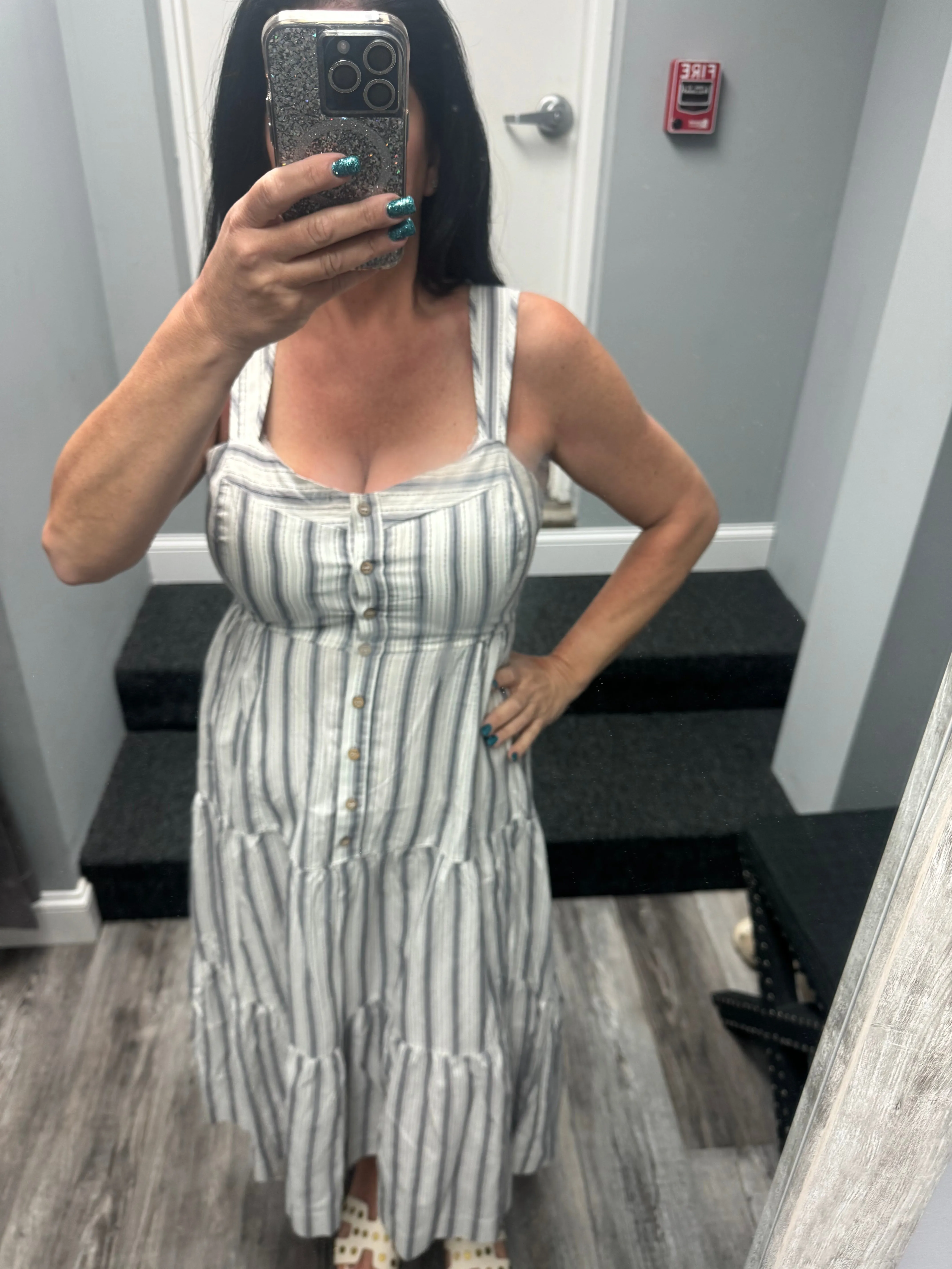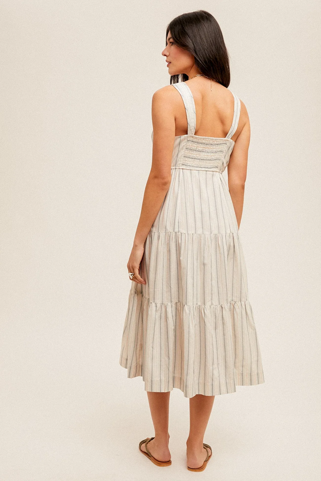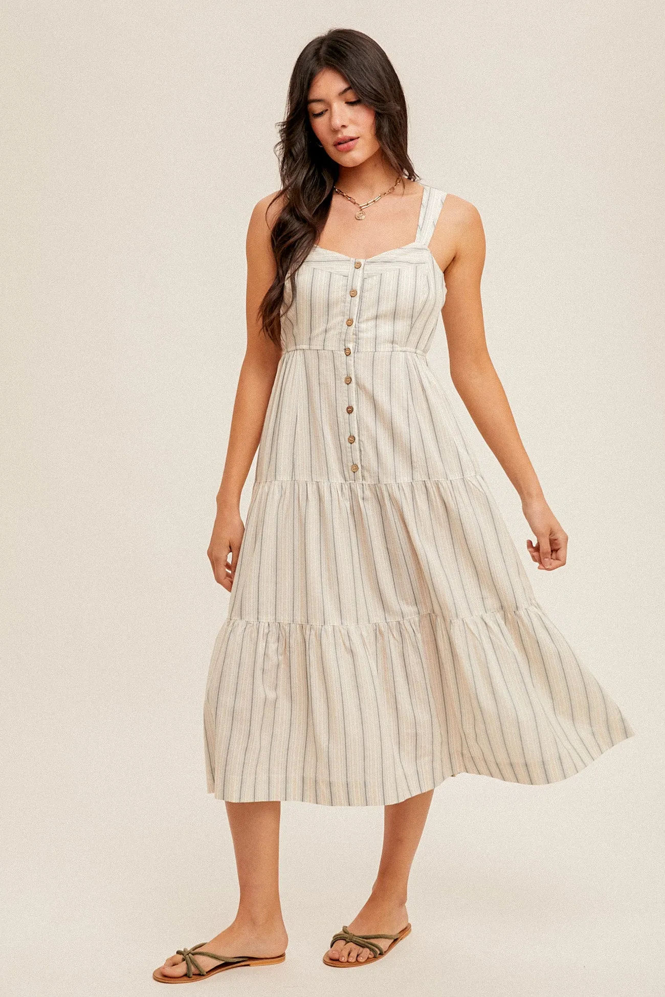 Hem & Thread Sweetheart Buttonfront Striped Tiered Midi Dress