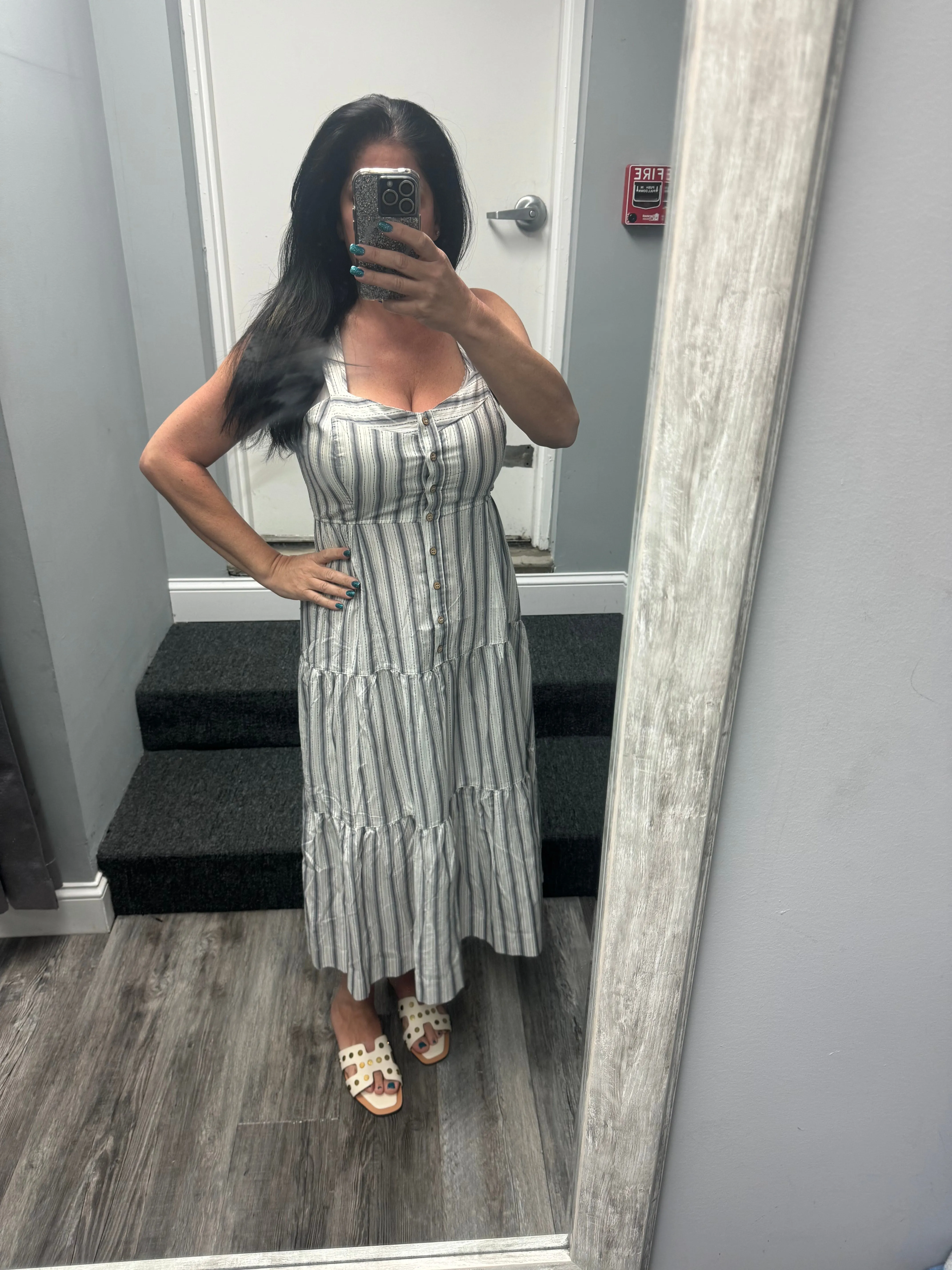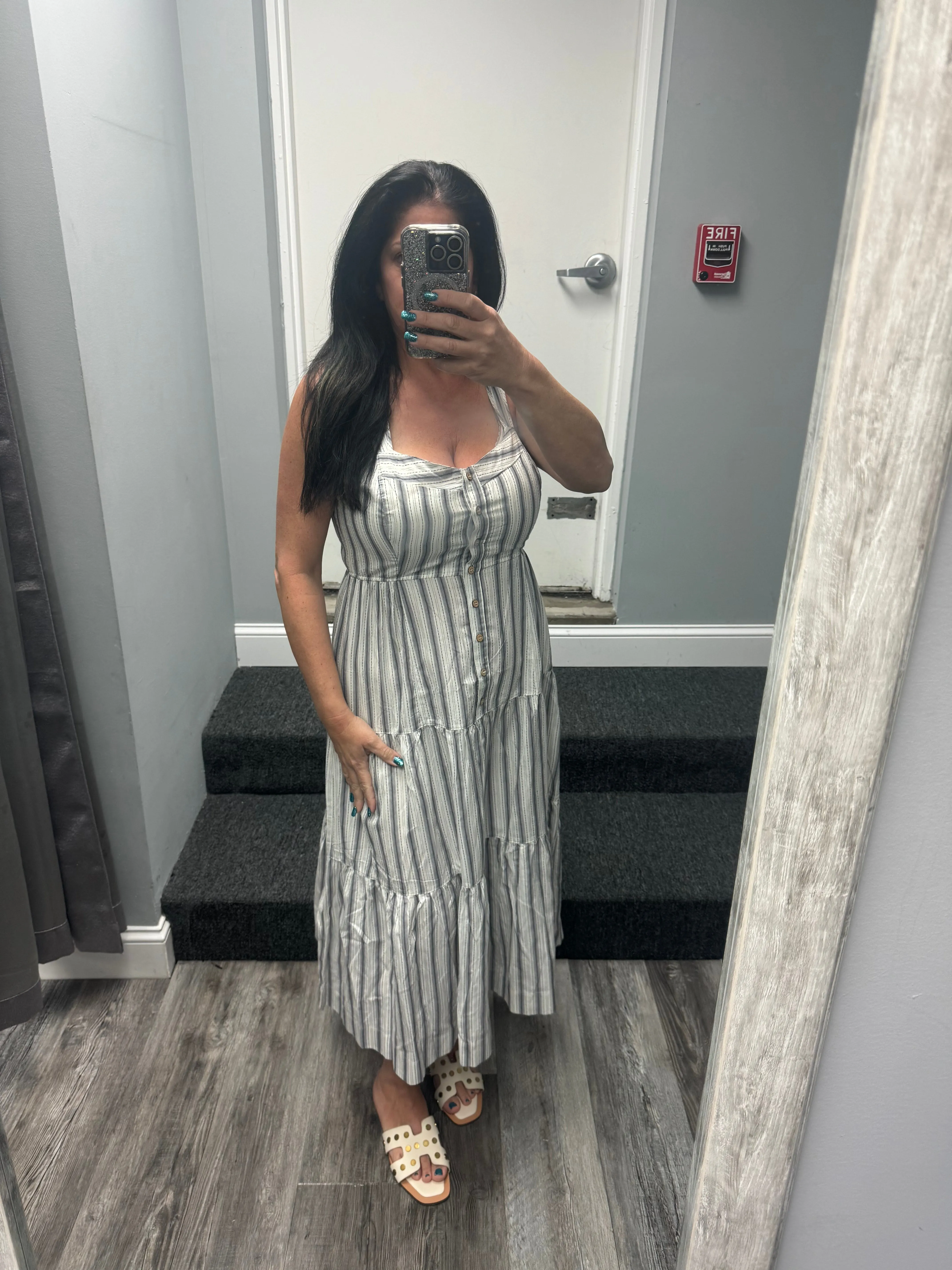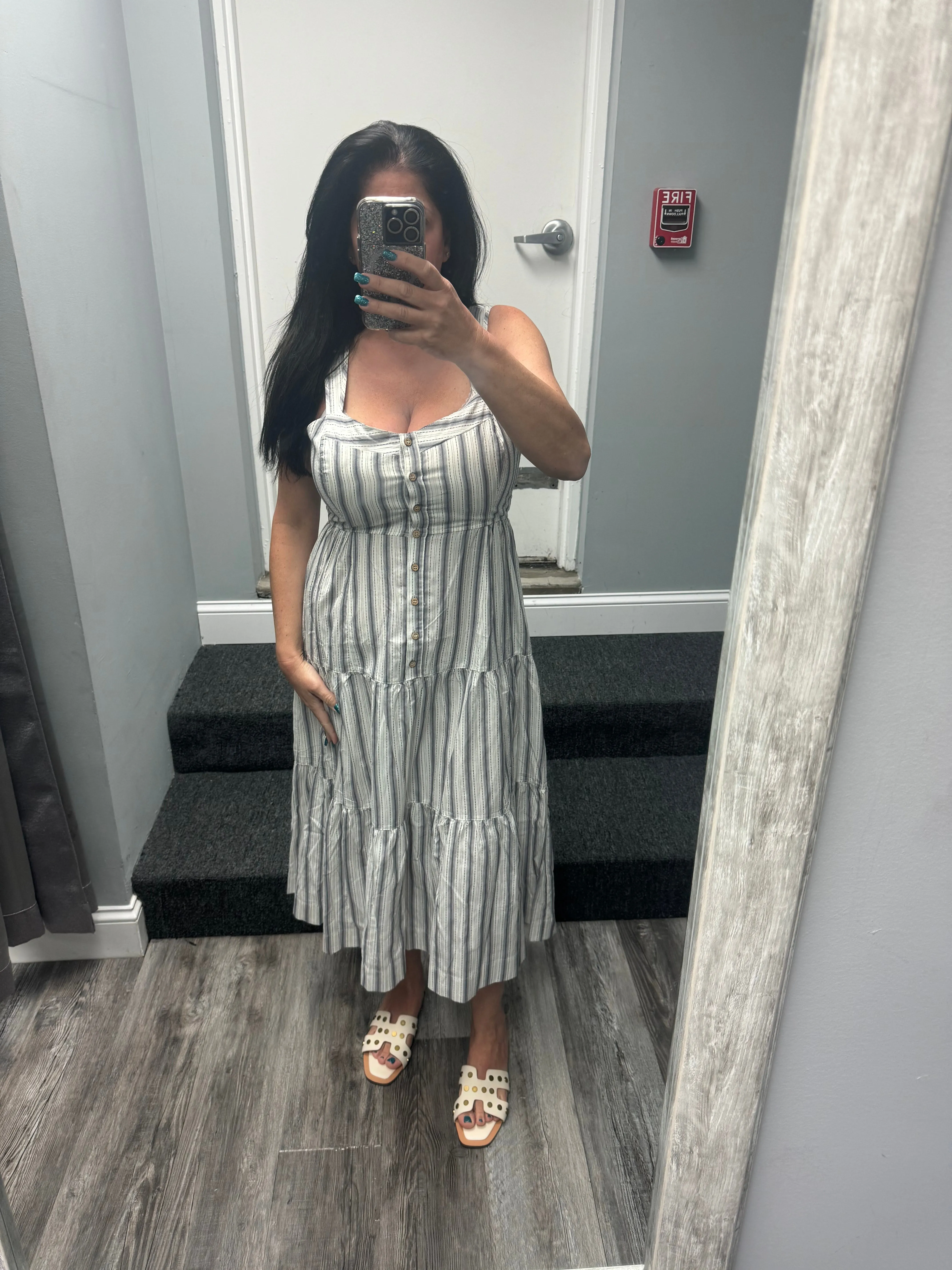 Hem & Thread Sweetheart Buttonfront Striped Tiered Midi Dress