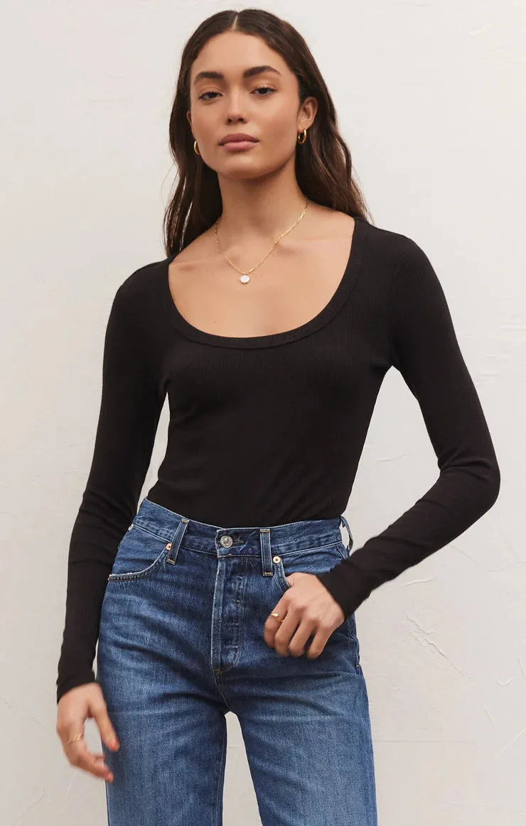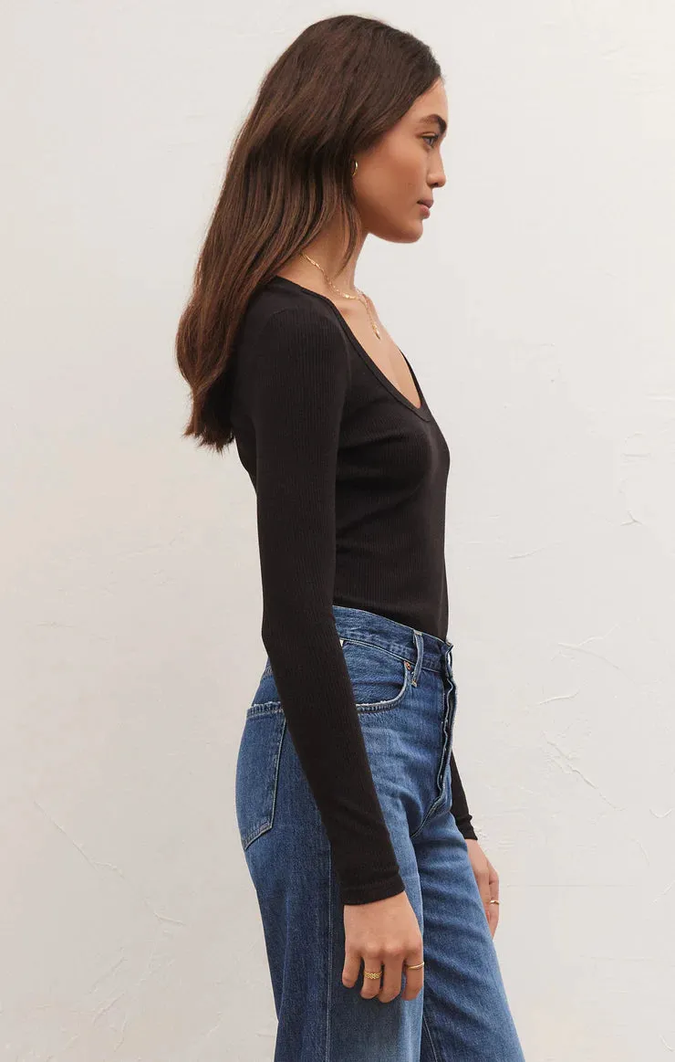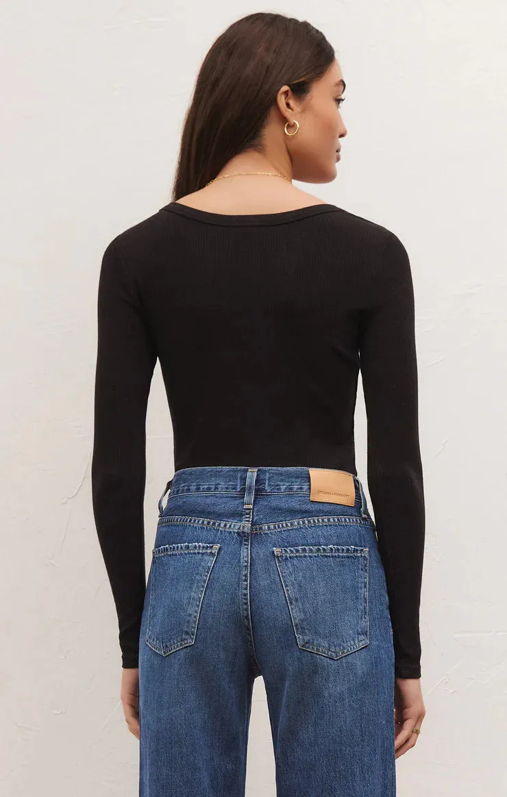 Say hello to our newest bodysuit, the Lilah Long Sleeve Rib Bodysuit.