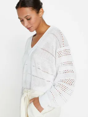 This luxuriously soft top features a sleek scoop neckline and snap button closure, as well as a thong bottom with semi-sheer fabric in white.